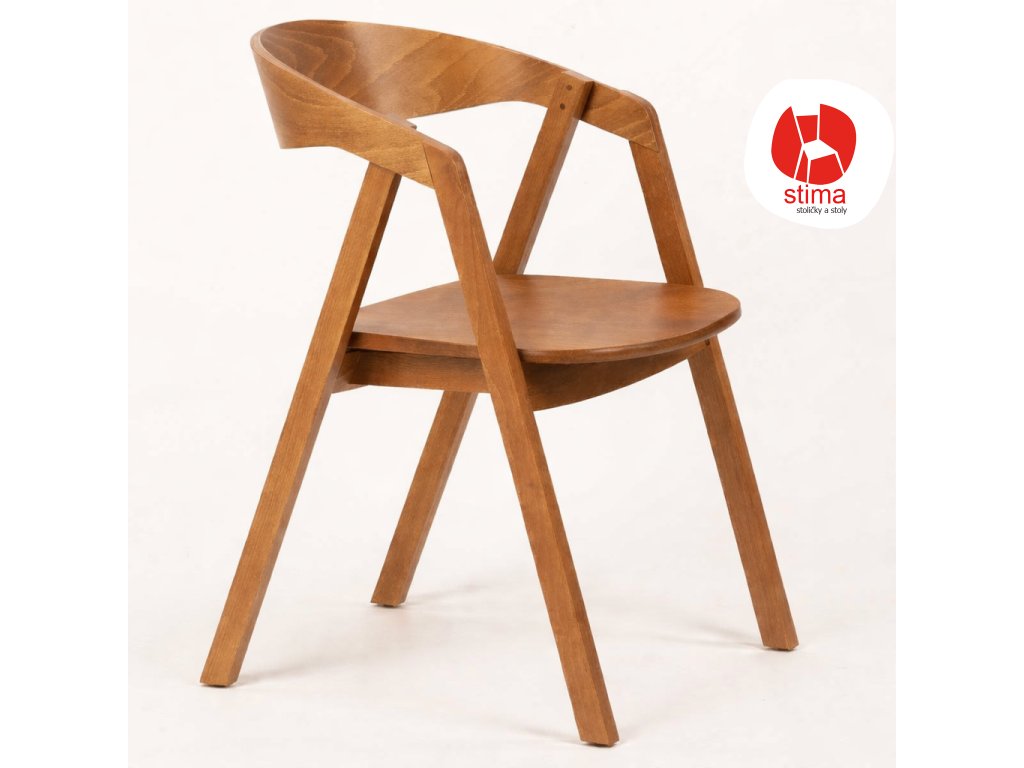 Moderná jedálenská stolička s podrúčkami. Základom je kostra z bukového masívu, sedák aj opierka sú ohýbaná preglejka. Jednoduchá, vzdušná konštrukcia, ktorá neodmysliteľne patrí k modernému nábytku je zároveň pevná a je vhodná aj pre stredne vysokú záťaž v komerčnej prevádzke. Pohodlné sedenie, kvalitné prevedenie a kvalitný materiál spolu s cenou tvoria celok hodný pozornosti.