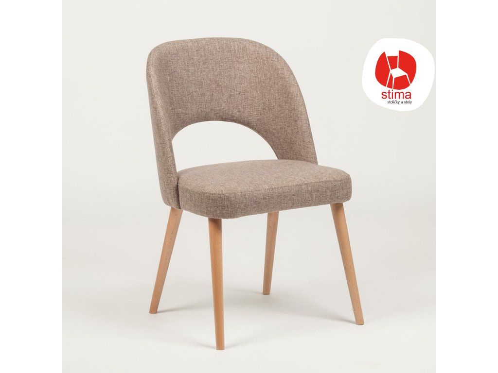Sedák aj opierka sú čalúnené, čo zvyšuje komfort pri každodennom používaní aj dlhšom sedení. Buková podnož zabezpečuje stabilitu a pevnosť, zatiaľ čo jednoduchý dizajn umožňuje ľahké kombinovanie s rôznymi typmi stolov a interiérov.