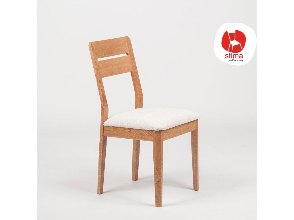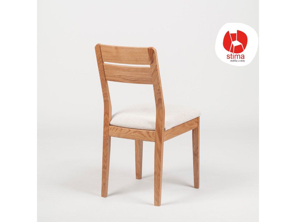 Čalúnený sedák zabezpečuje pohodlné sedenie aj pri dlhšom stolovaní. Masívna dubová konštrukcia dodáva stoličke pevnosť, stabilitu a dlhú životnosť, pričom prirodzená kresba dreva robí každý kus jedinečný.