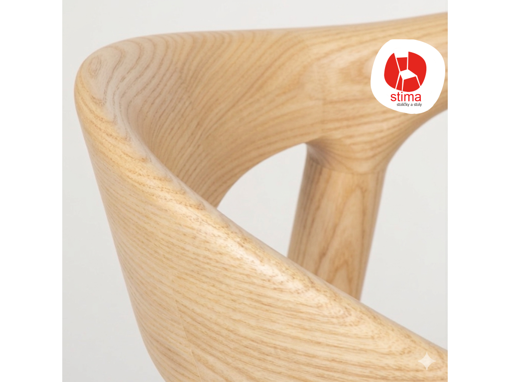 Jedálenská stolička KR 52 s čalúneným sedákom spája výrazný organický dizajn s vyšším komfortom pri sedení. Plynulé línie prirodzene prepájajú sedák, opierku aj podrúčky do jedného celku, čím vytvárajú elegantný a nadčasový vzhľad.