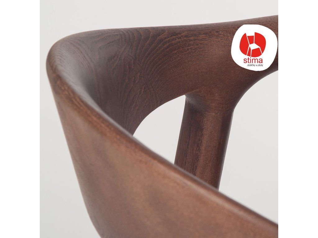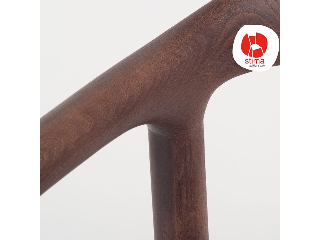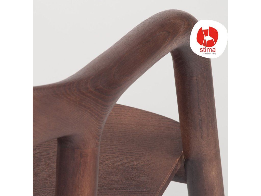 Konštrukcia z masívneho dreva zabezpečuje pevnosť a stabilitu, zatiaľ čo tvarované operadlo s integrovanými opierkami rúk poskytuje príjemnú oporu pri sedení.