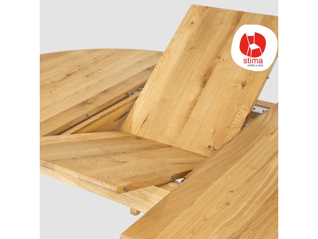 Kvalitný voskový olej zvýrazňuje jeho precízne remeselné spracovanie a hladký povrch. Vďaka jednoduchému mechanizmu sa mení z okrúhleho stola na elegantný ovál, ponúkajúci flexibilitu a štýl pre každú domácnosť.